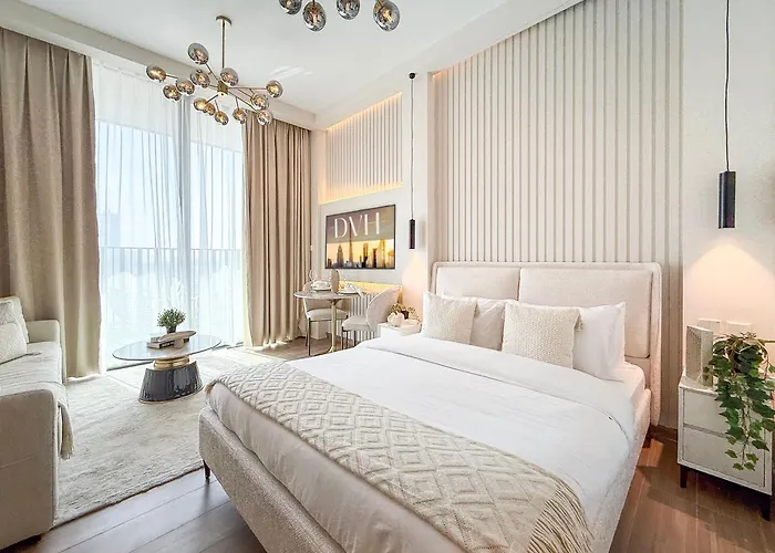 The 39 m^2 Modern Chic Studio Apartment, Belgravia Heights 2, Jvc Dubai is about a 25-minute walk from Tasjeel Car Registration. Situated within easy reach of Dubai International Stadium, this 1-bedroom apartment offers a terrace where guests can relax and enjoy the city view.